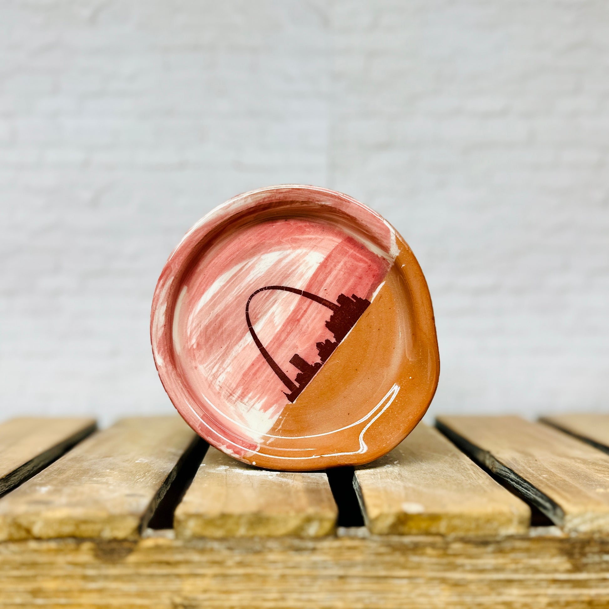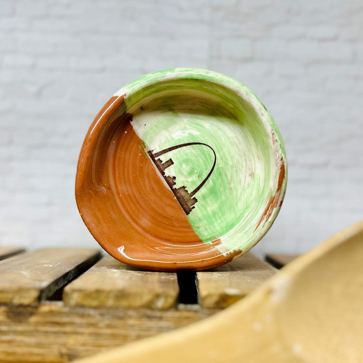 Tired of messy spoons? Keep your kitchen clean and add a pop of fun with our handmade ceramic spoon rests! Each one is thrown on a pottery wheel and features the iconic St. Louis Arch with a beautiful assorted colors of glaze